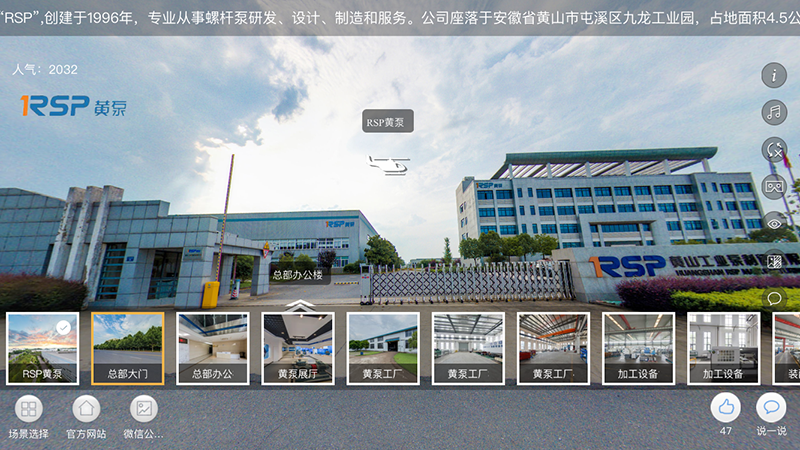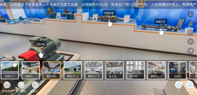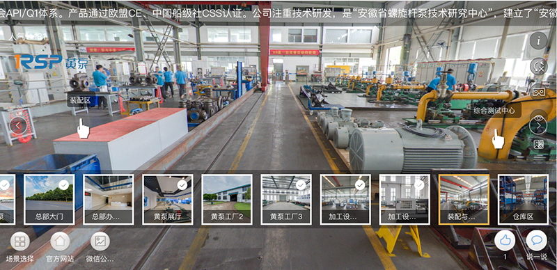 企业VR功能可以满足客户在手机端观看黄泵工厂、办公场所和展厅设备等功能,真正做到足不出户的参观体验。