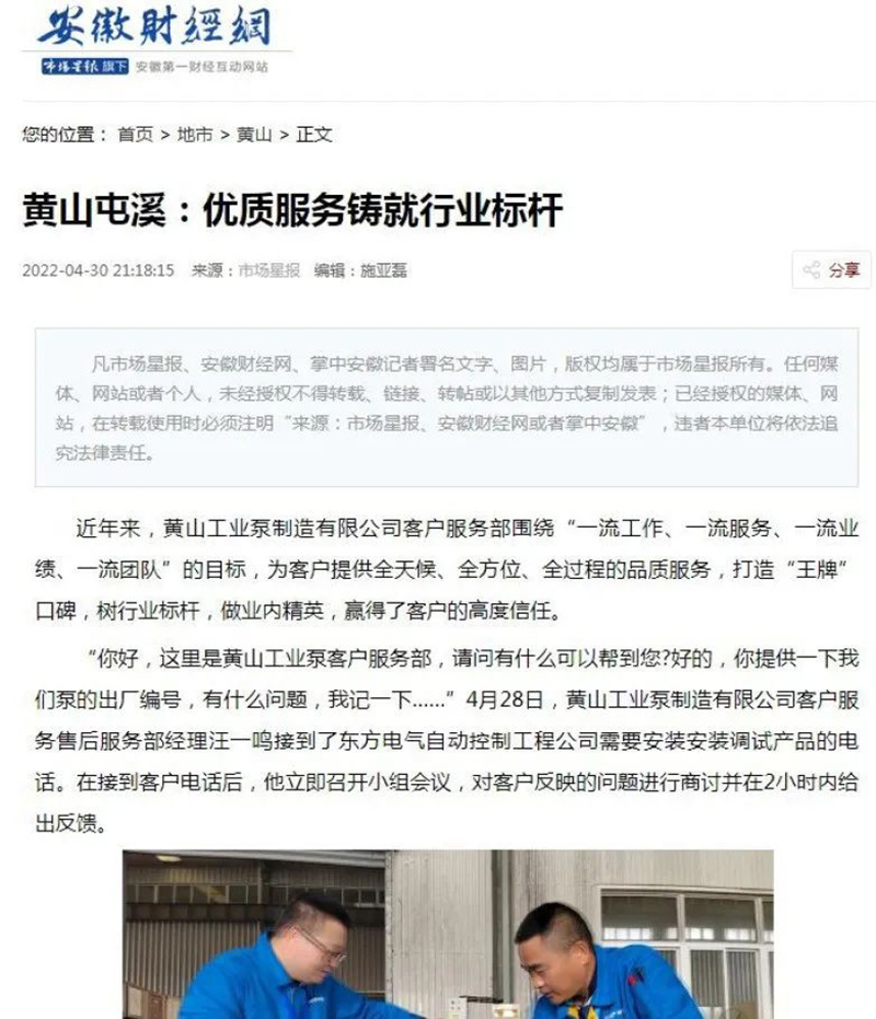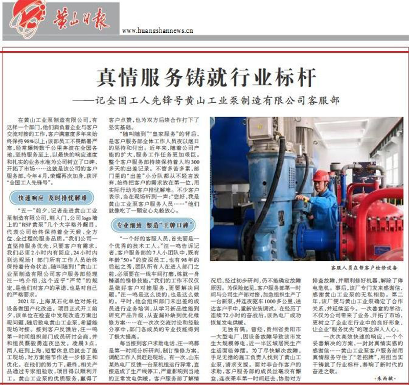 自2022年1月全总印发《关于推荐评选2022年“全国五一劳动奖”和“全国工人先锋号”的通知》以来,公司工会认真组织,努力把公司客户服务的先进事迹和优秀团队精神展现出来,历经初审、省级公示、复审以及最终名单公示,最终公司客户服务部获得该项荣誉,同时RSP黄泵也是黄山市唯一获此殊荣的单位。