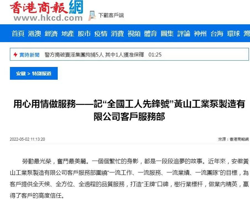 近日,中华全国总工会(以下简称“全总”)发布了关于表彰2022年“全国五一劳动奖”和“全国工人先锋号”的名单,黄山工业泵制造有限公司客户服务部获得“全国工人先锋号”荣誉称号。