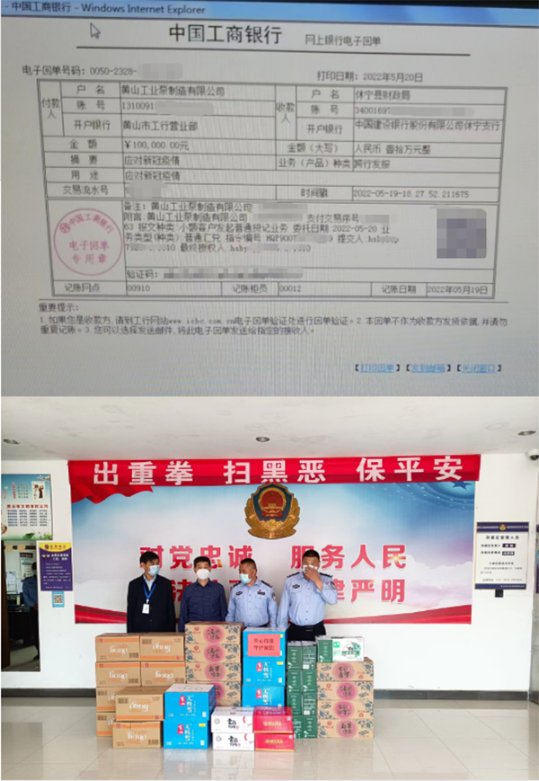 在做好企业自身发展的同时,RSP黄泵没有忘记自己的社会责任。今年以来,RSP黄泵先后派出志愿者队伍,分别参加黄山市工商联机关党委高速路口疫情执勤、九龙工业园核酸检测服务等,并为企业所在地奋战在抗疫一线的人员送去慰问。面对自今年五月以来黄山市休宁县出现的疫情,RSP黄泵通过休宁县财政局向休宁县捐款十万元,专项用于疫情防控工作。